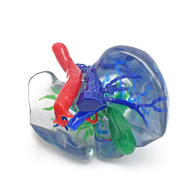 在肝脏外科病例中,根据CT等医疗检查获得的患者数据,赛纳WJP直喷式彩色多材料3D打印技术打印出彩色透明的肝脏模型可以精准呈现肝脏整体形状、病变部位,清晰地再现肝脏内部血管形态和病灶形态,有助于术前模拟手术过程,确定肝脏切除入路、切除范围、计算剩余肝体积等操作,最终优化手术方案。